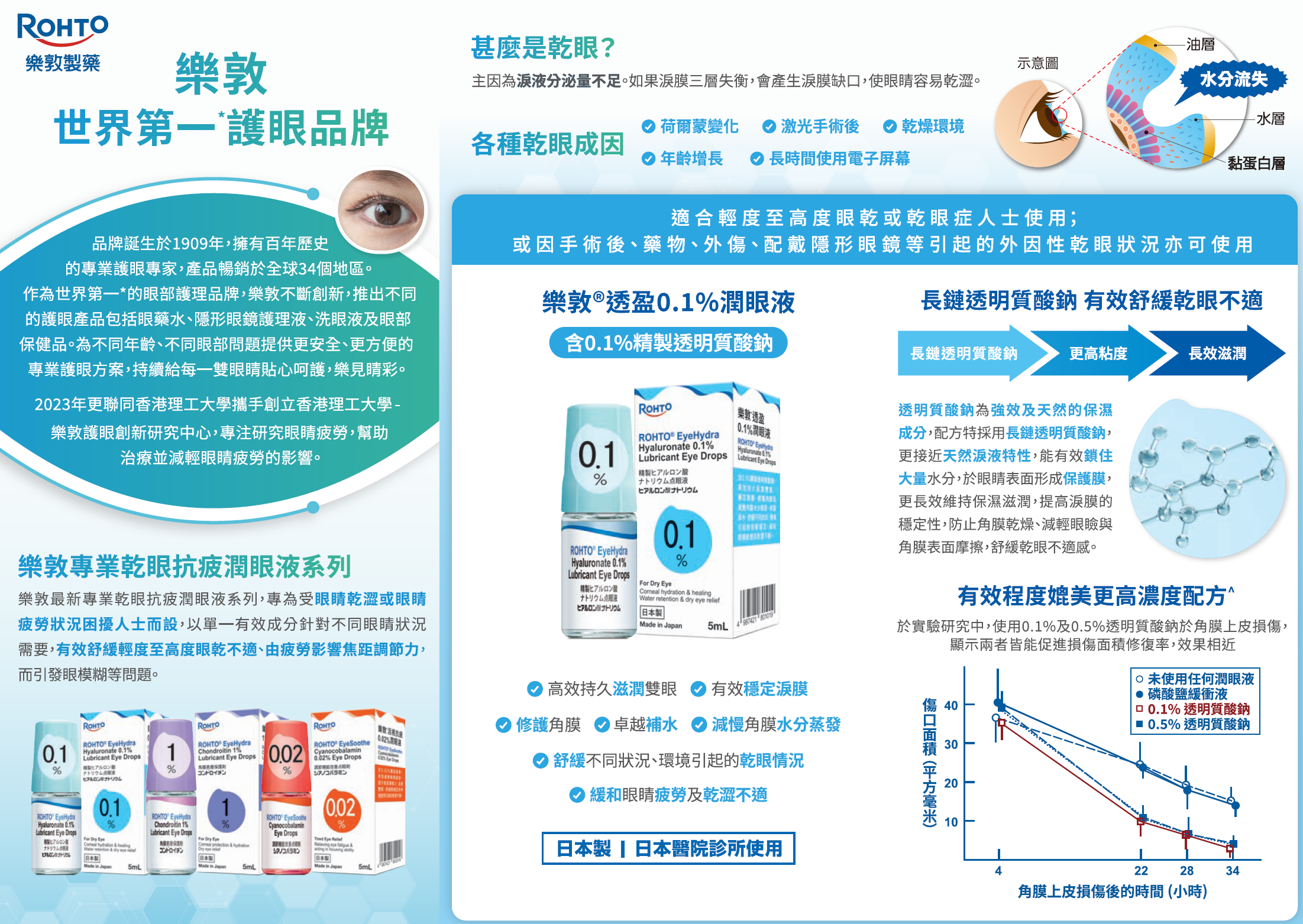 - 含1%軟骨素硫酸鈉, 有效滋潤雙眼, 保護角膜素層防止乾燥, 舒緩不同環境因素引起的乾眼情況, 緩和眼睛疲勞及乾澀不適