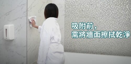 - 待表面乾後,將扶手吸盤壓於牆身上,按下上下兩個鎖掣