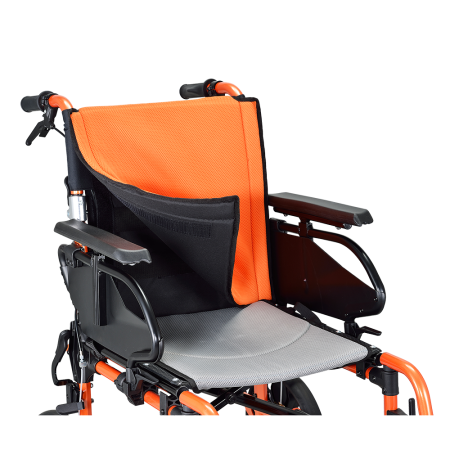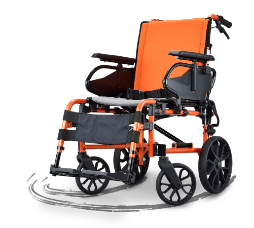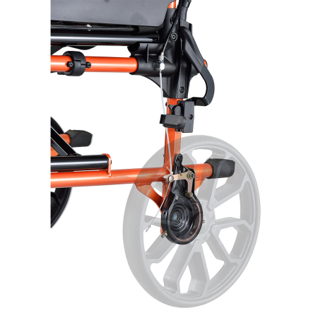 • 手推柄設有2段式剎車手柄 (鼓剎) (Attendant drum brake),向上按可減速,亦可轉換成泊車模式