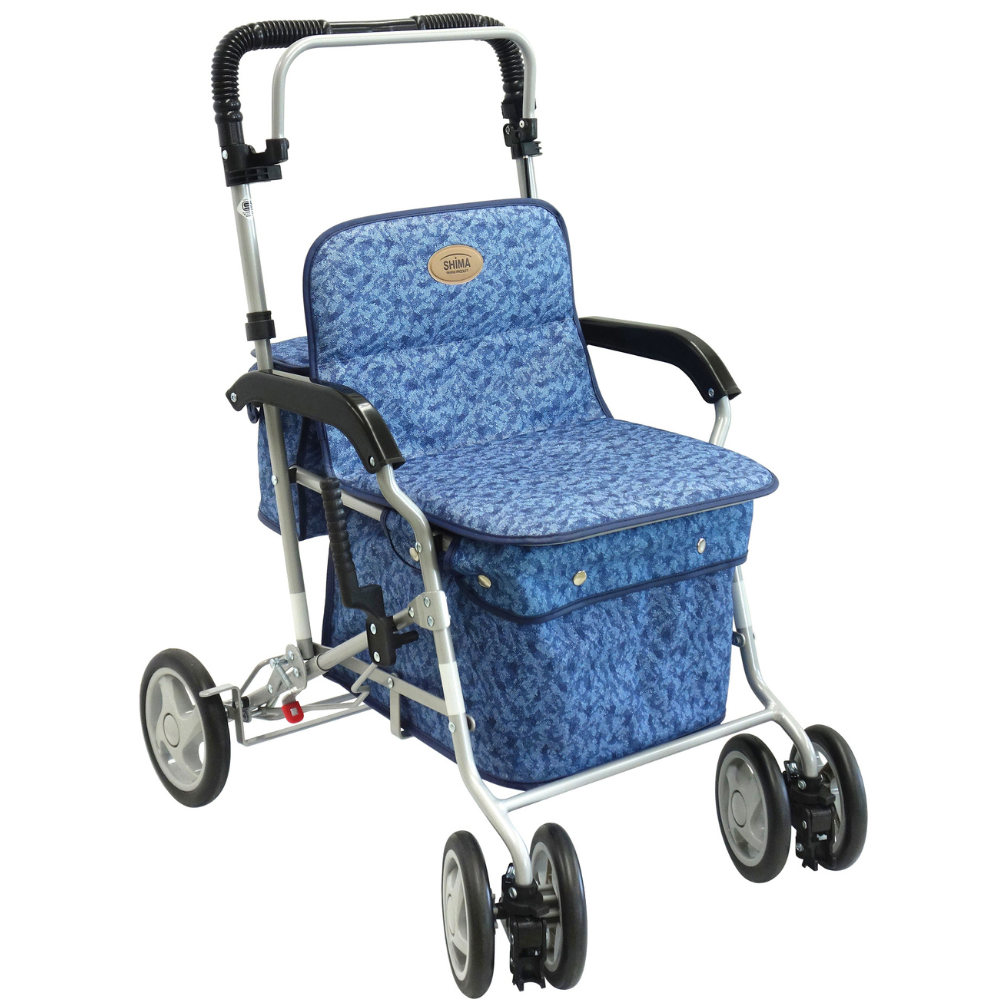 日本 Shima (島製作所) 推出的 March A (マーチA) 是一款經典的「標準盒型」 (Box Type) 助行車,以高穩定性與大容量收納為主要特色。此版本為**「藍色」 (Blue)** 款式,簡潔明亮的藍色車身,實用且耐看。