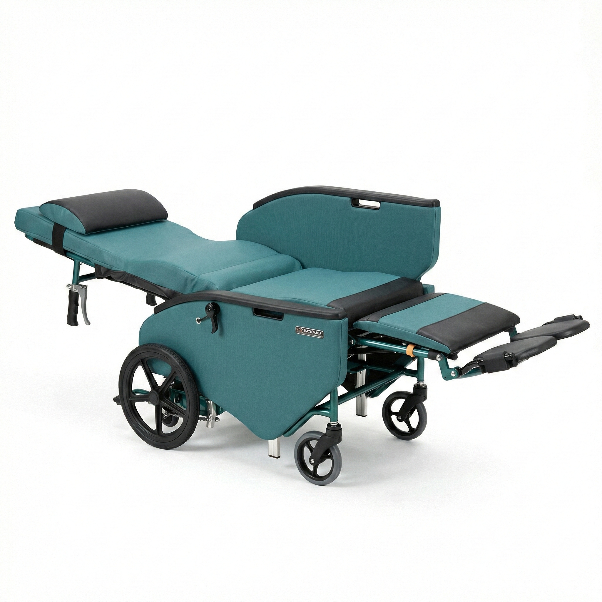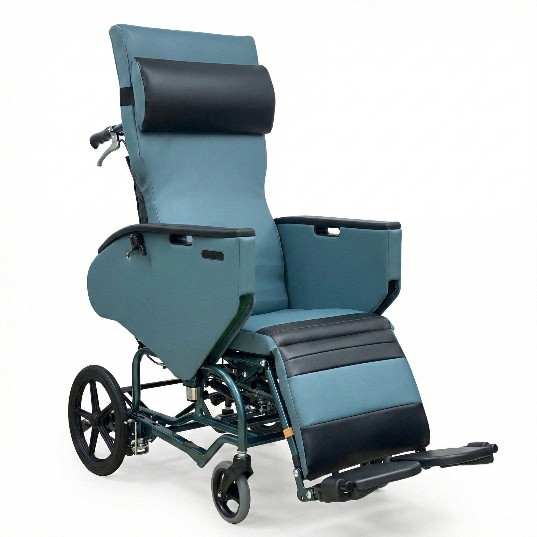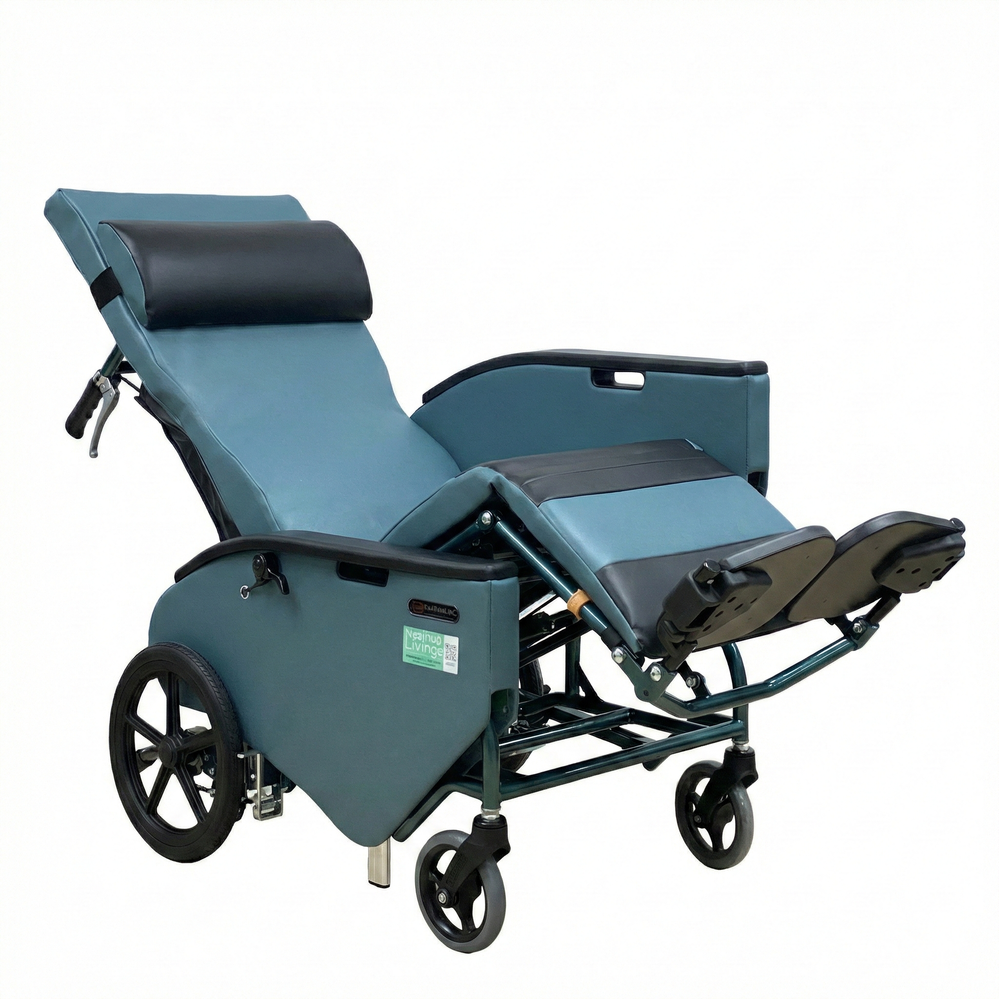 - 靠背角度及腿部角度聯動功能,可調校至完全平躺,方便長期卧床的使用者過床/椅子