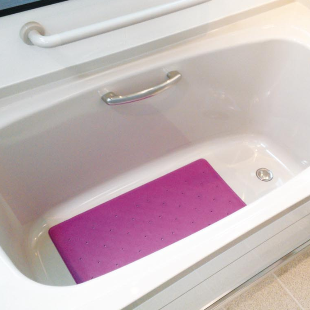 日本 Shima (島製作所) 的 7542 樂湯浴室防滑墊 (Non-slip Bath Mat Rakuyu) 是一款專為預防浴室滑倒事故而設計的優質防滑墊。此版本為**「紫色」 (Purple)** 款式,鮮豔的顏色在浴缸中清晰可見,特別適合視力較弱的長者使用。