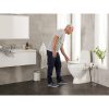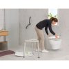 - 適合固定於大部分座廁,可助用者如廁時,減輕膝蓋受力,並可借助更易起身