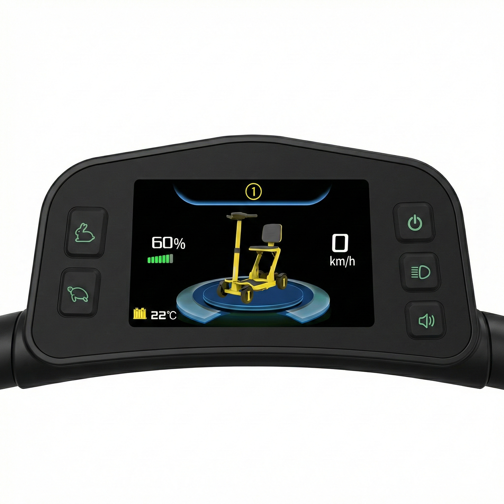 - 現代化彩色顯示屏 控制台設有鮮豔的彩色顯示屏,能夠清晰顯示行車資訊