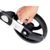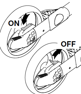- 手推柄設二段式剎掣系統,向上按兩邊剎車手掣減速;向下推,可鎖定車輪,坐下休息