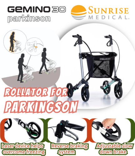 有些人需要一些額外的幫助才能安全地行走。如果您患有柏金遜,您可能是其中之一。我們為您量身打造了一款特別設計的助行車,具有完全符合您特定需求的功能。憑借 Gemino 30 Parkinson,您將能夠安全自信地外出! - 激光設備幫助您克服凍結