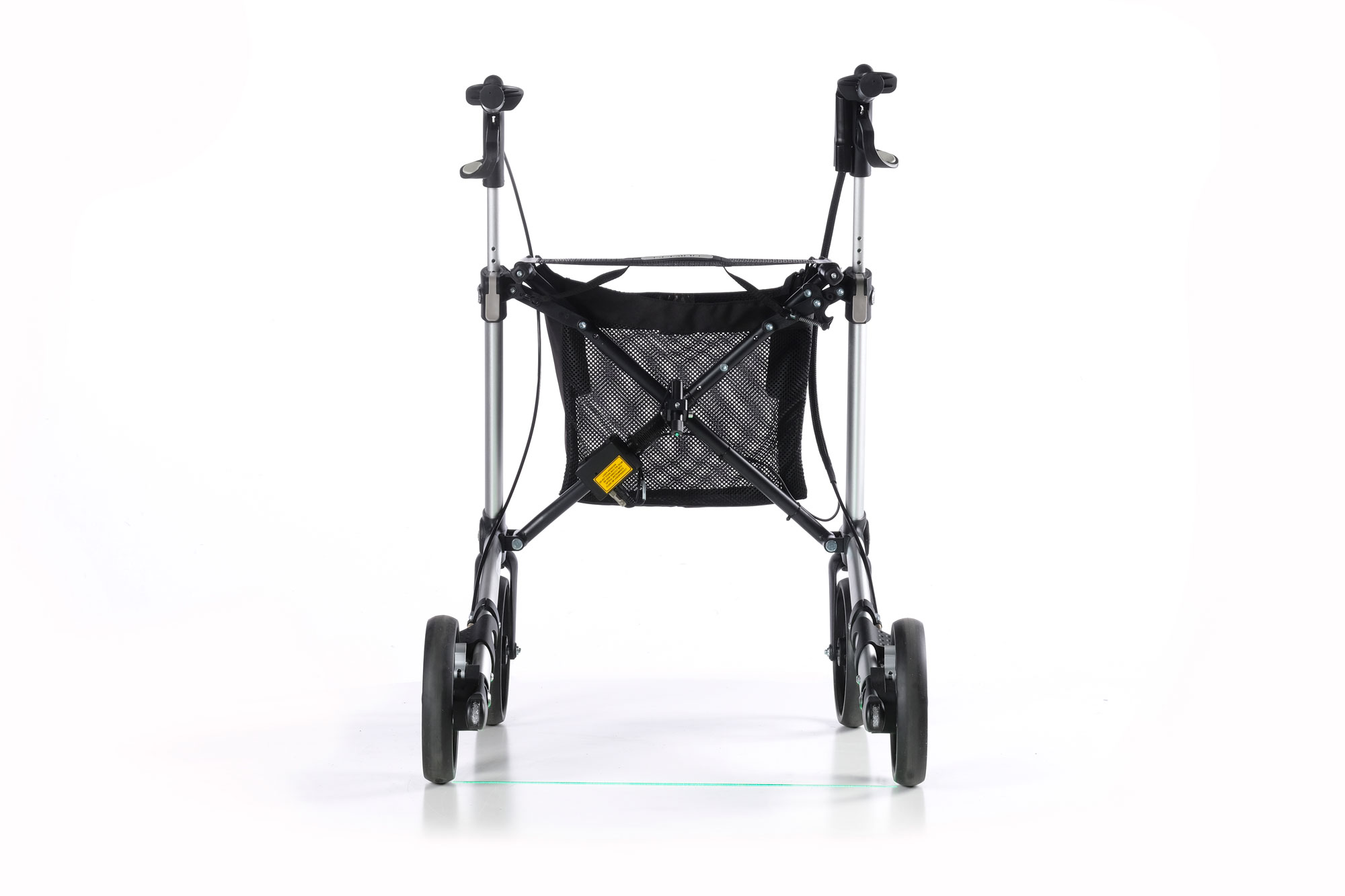 Gemino 獨特的摺疊和鎖定系統使其易於收納和運輸,而且僅重 7.5 公斤。如果您的存儲空間有限,您只需將把手調整到最低位置,即可進一步縮小助行車的尺寸