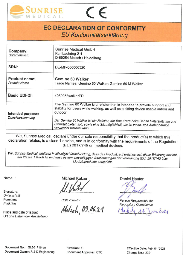 Gemino 60 Walker 是市場上唯一經過室外使用測試和認證的「醫療助行車」。堅固的框架設計搭配超大軟質輪胎,讓您在完全的舒適和安全中外出。鵝卵石街道或門檻?憑藉 Gemino 60 Walker,您將輕鬆克服任何障礙