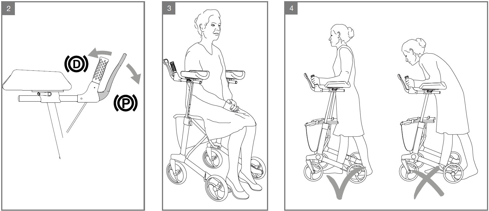 Gemino 60 Walker 助行車是您需要重新學習行走時的絕佳訓練伴侶。人體工學設計的前臂支撐為您提供所需的支援和穩定性。由於大輪胎和堅固的框架設計,您還可以安全地將練習延伸到室外環境