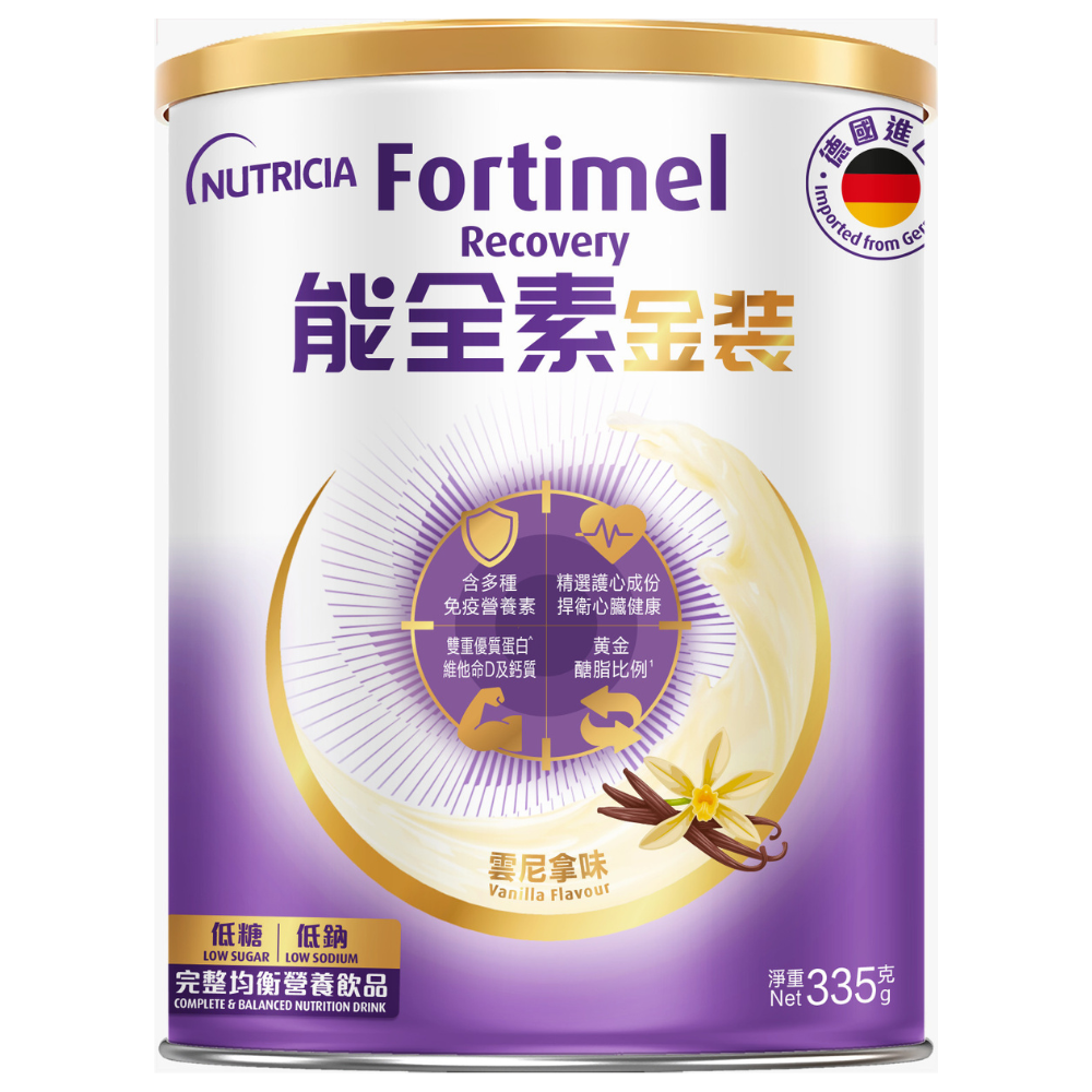 荷蘭 Nutricia Fortimel 金裝能全素完整均衡營養粉 (335g) (雲尼拿味) [H6540010040]【德國製造】【12罐/箱,如顧客想原箱買,可選數量為12】