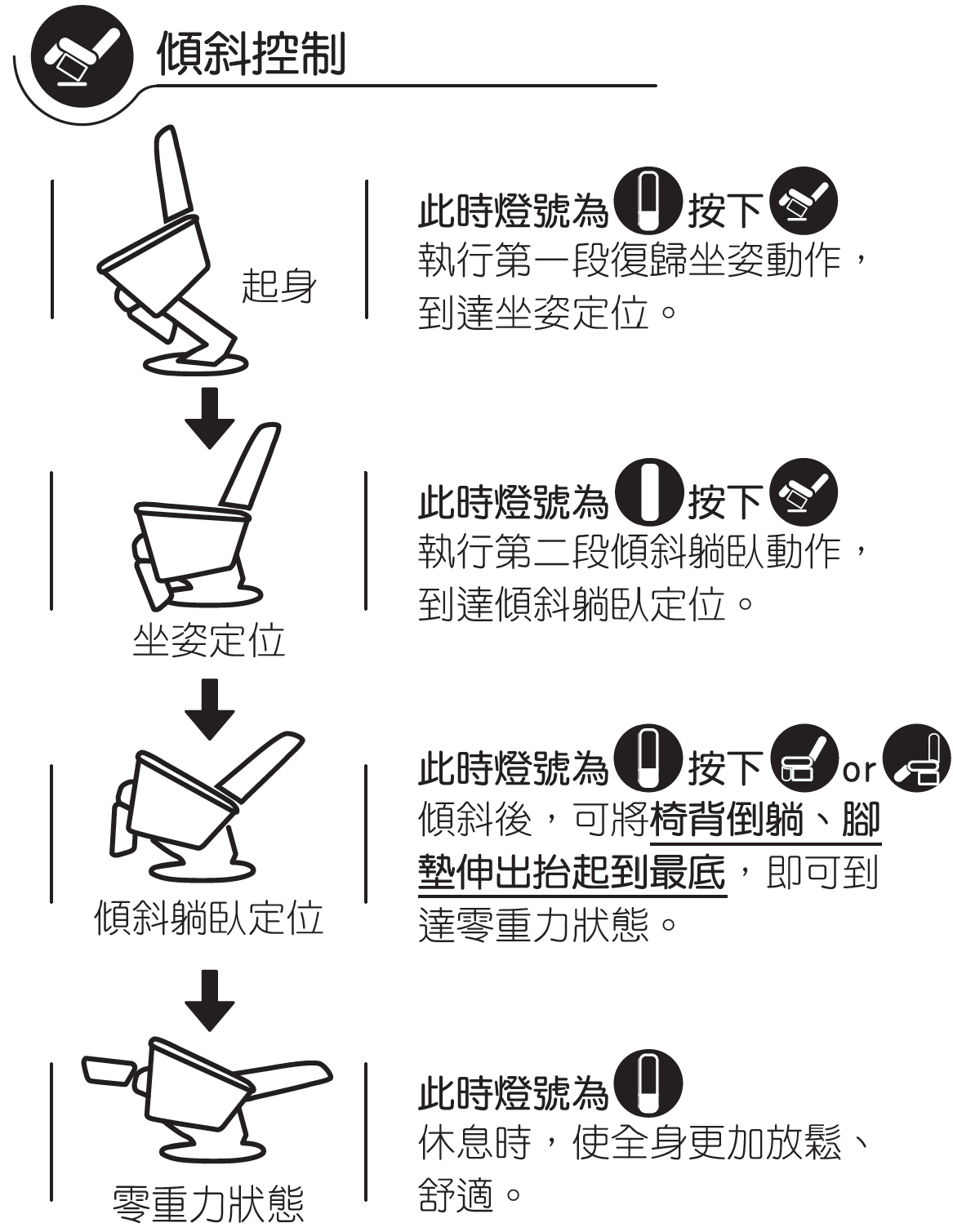 - 疲勞上班族:利用坐姿調整(零重力坐姿)幫助全身放鬆及午睡