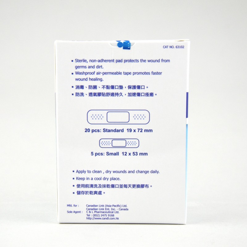 | CANC-0069 | 多款透明膠布 | 綜合裝:包含多種尺寸,應對不同傷口 | 24 片 / 盒 | CC-TPA-24 |