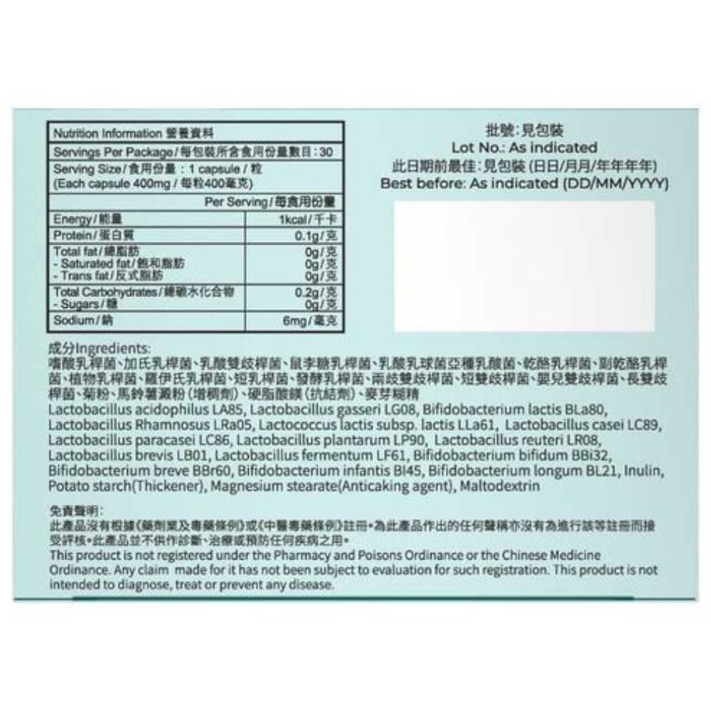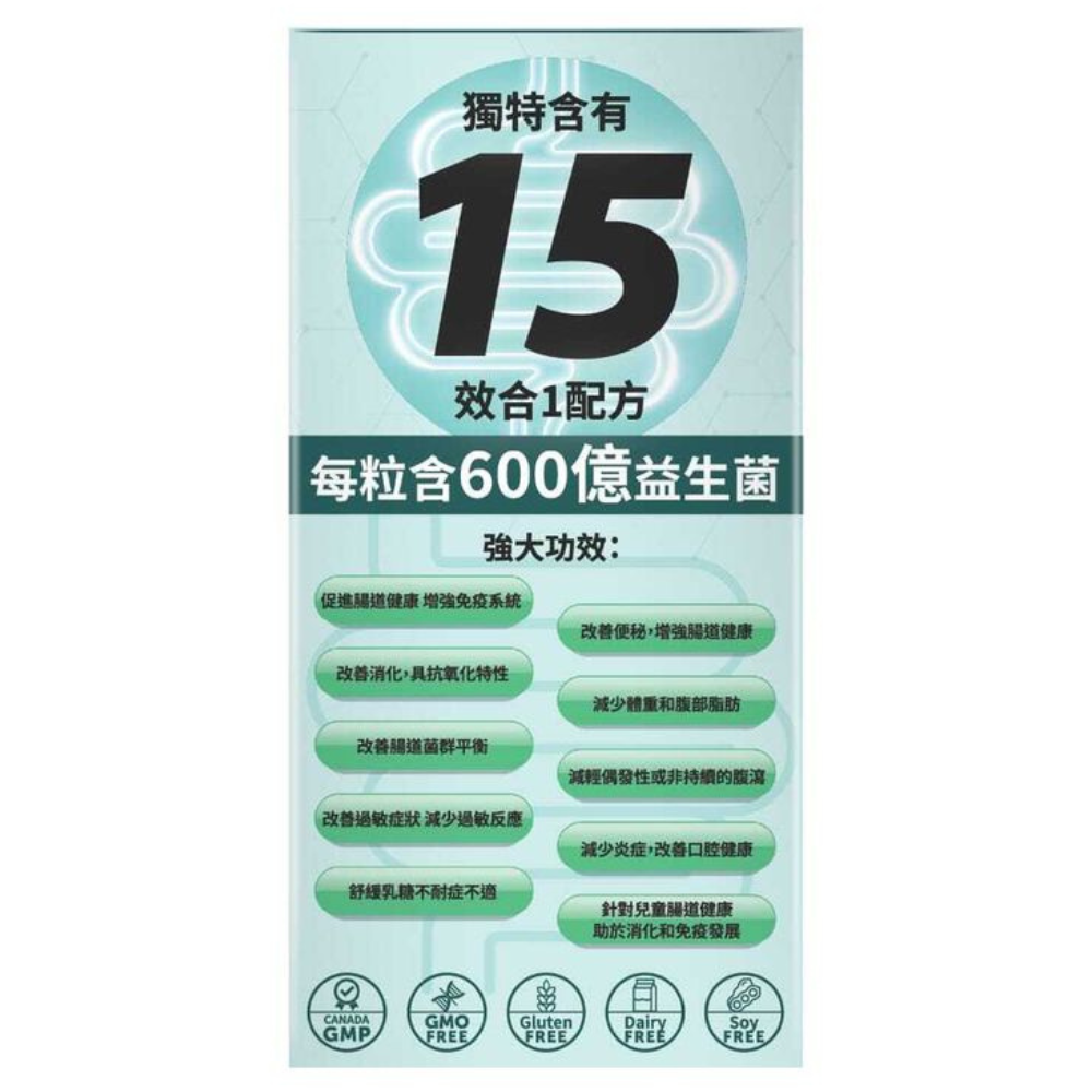 注意:請勿使用40°C以上熱水,以免影響活菌效果 - 每粒膠囊含以下15種高效益生菌:
