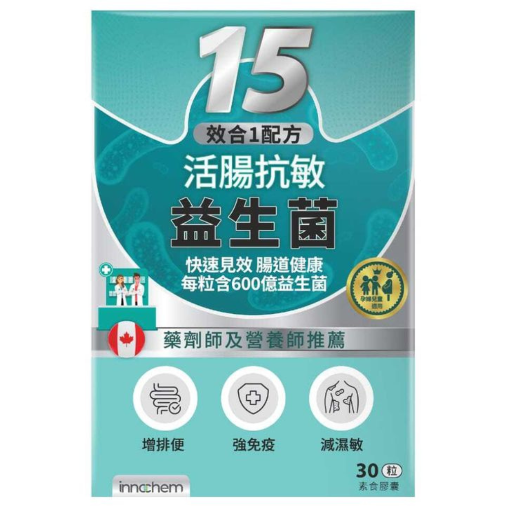 你嘅腸胃健康係咪成日被壓力、飲食習慣或者敏感問題困擾?腸道唔好,唔單止影響消化,仲可能導致敏感、便秘甚至免疫力下降!😣 Innochem 15效合1配方活腸抗敏益生菌,幫你解決腸道煩惱,全面提升健康!✨ - 💊 高達600億活菌量,15效合1配方💕