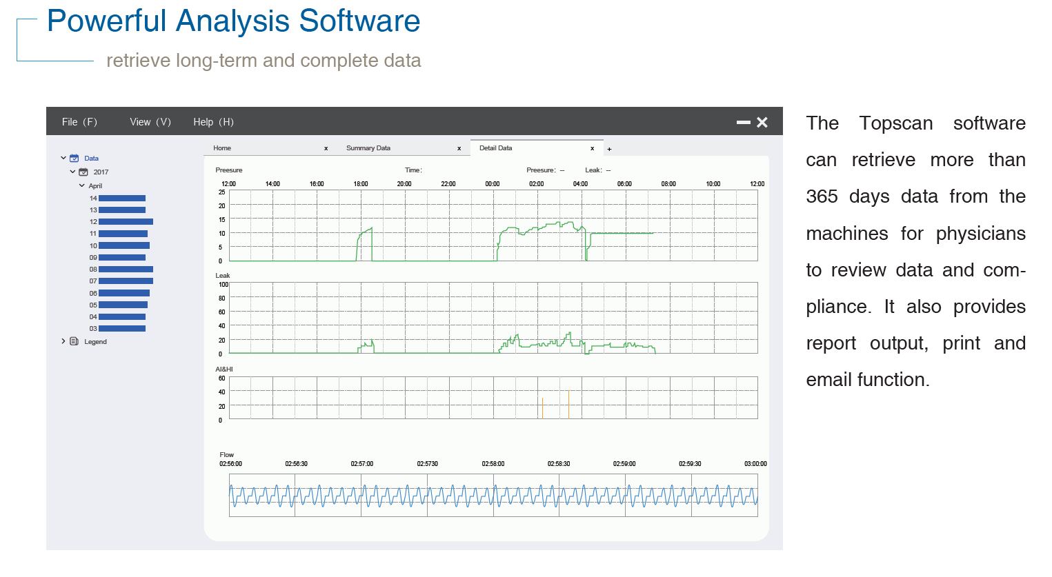 - 軟件能從機器中檢索超過 365 天的數據,供醫生審核數據和依從性